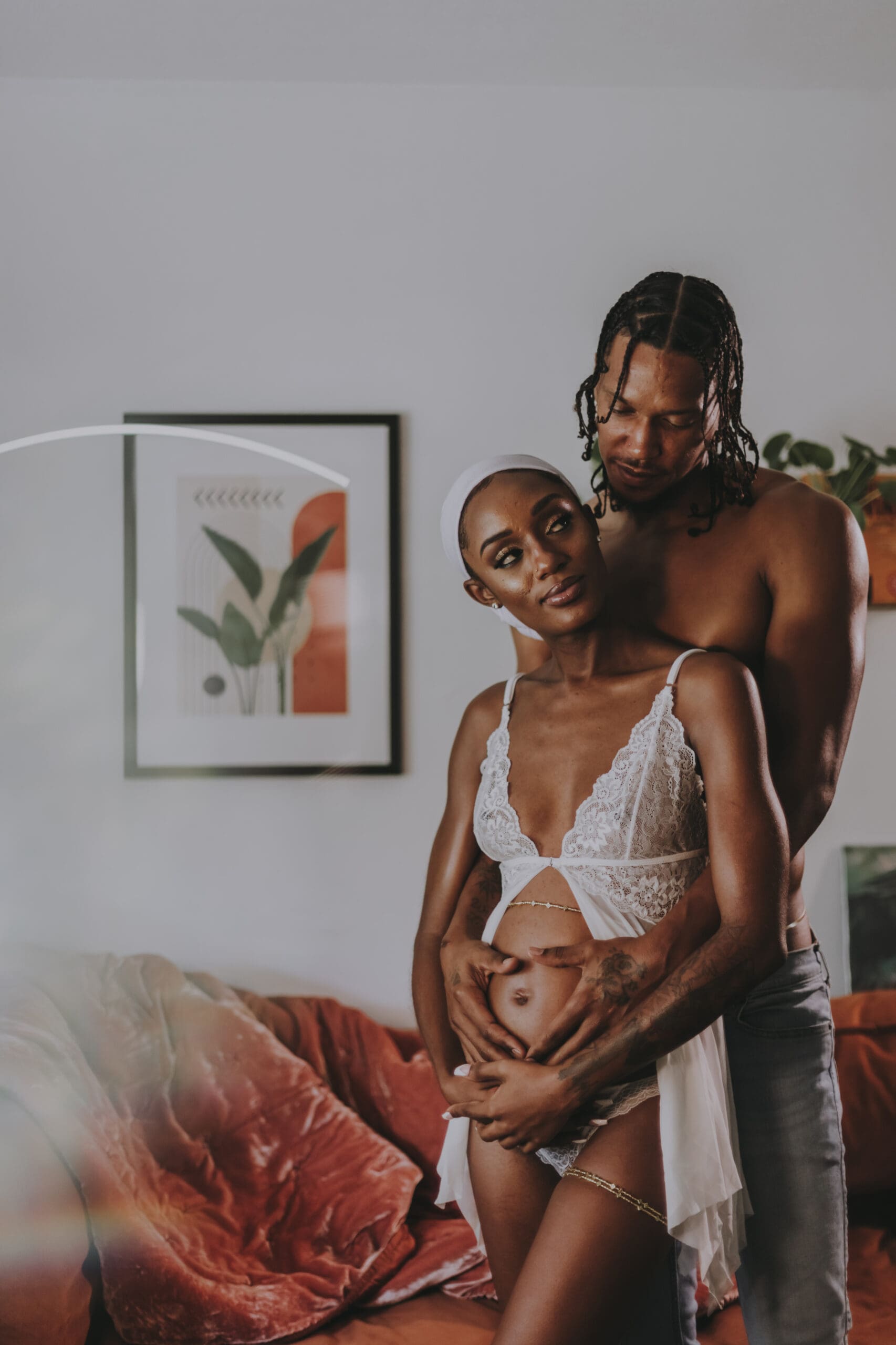 An at-home maternity session in North Miami with Luci and Alex, blending digital and medium format film to capture their fun, retro-inspired style and the joy of this new chapter.
